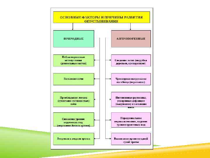 3. ОПУСТЫНИВАНИЕ ПОЧВ ухудшаются физические свойства почв, гибнет растительность, засоляются грунтовые воды, резко падает биологическая продуктивность, а следовательно, подрывается и способность экосистем восстанавливаться…