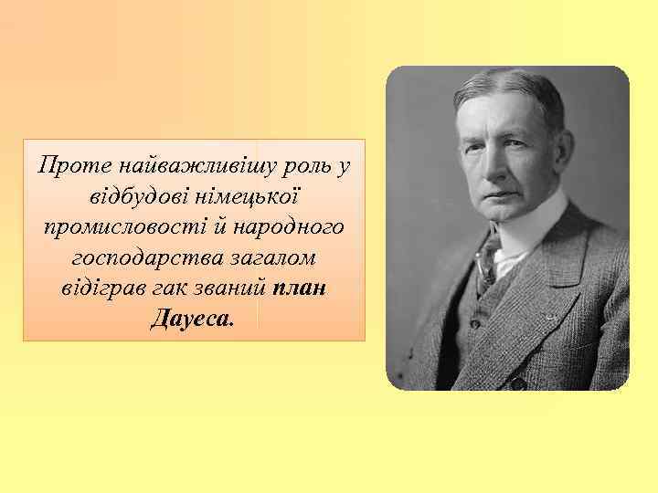 Проте найважливішу роль у відбудові німецької промисловості й народного господарства загалом відіграв гак званий план Дауеса.