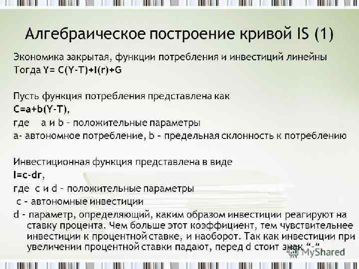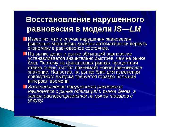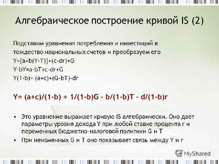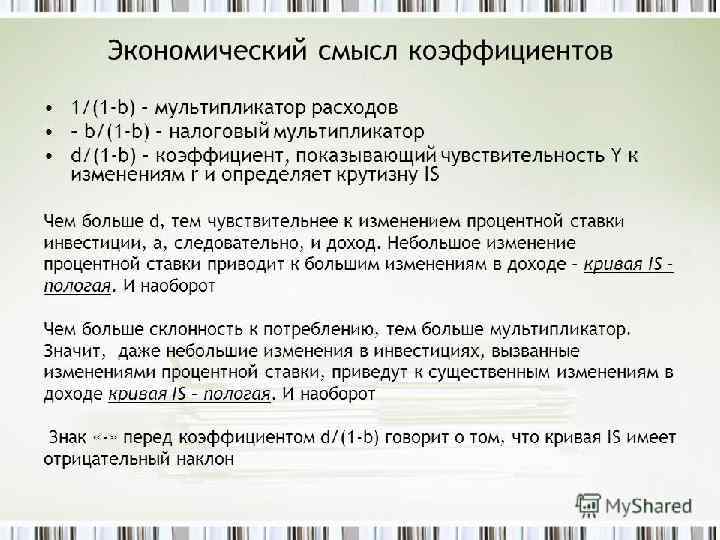 Тема 9. Модель совместного равновесия товарного и денежного рынков Модель IS-LM Хикса - Хансена