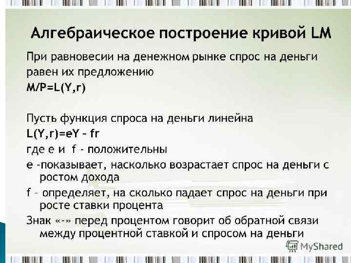Экономический смысл графика LM