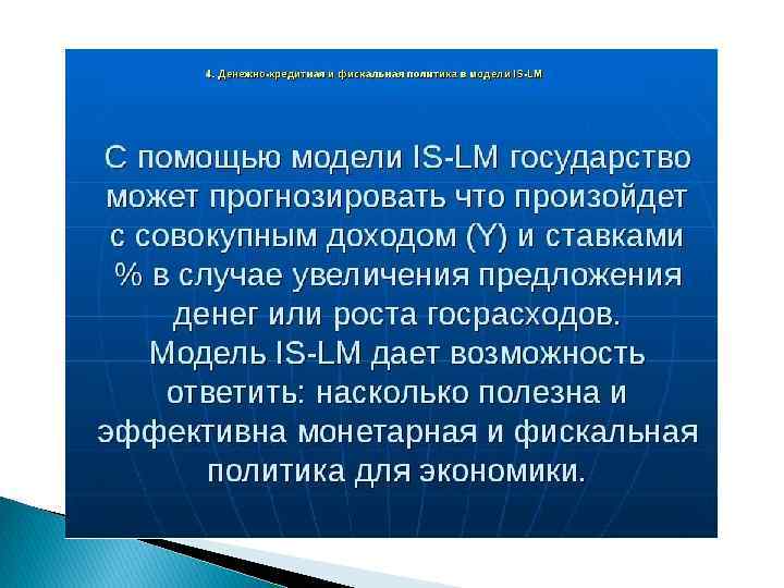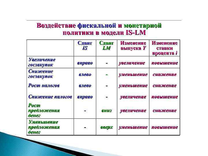9. 5 Последствия бюджетноналоговой и денежнокредитной политики в модели IS-LM