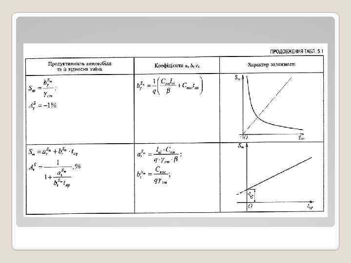 9. 2. 1. Залежність собівартості перевезення 1 тонни вантажу від коефіцієнта використання пробігу автомобіля, Вид залежності - дробно-лінійний. Висновок: собівартість перевезення 1 тонни вантажу знаходиться у спадаючій гіперболічній залежності від коефіцієнту використання пробігу автомобіля. Робоча зона графіка розташована у першому квандранті, із збільшенням коефіцієнту використання пробігу величина Sт зменшується. Інтенсивність впливу на Sт збільшується при менших значеннях коефіцієнту використання пробігу. Графік має вид рівнобічної гіперболи. Збільшенню , а отже зменшенню Sт сприяє закріплення рухомого складу АТП за клієнтурою з метою зниження нульових пробігів, а також розробка раціональних маршрутів.