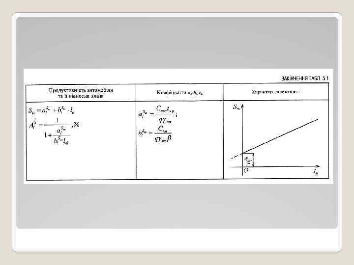 9. 2. 4. Залежність собівартості перевезення 1 тонни вантажу відстані навантаженої їздки, Вид залежності - лінійний. Висновок: собівартість перевезення 1 тонни вантажу знаходиться у зростаючій лінійній залежності відстані навантаженої їздки. Робоча зона графіка розташована у першому квандранті, із збільшенням відстані навантаженої їздки величина Sт збільшується. Інтенсивність впливу lгї на Sт збільшується при більших значеннях lгї. Графік має вид прямої лінії, що не проходить через початок координат.