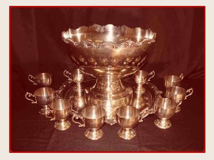 • Чем крепче напитки, тем меньше должны быть бокалы и рюмки • Рюмки и бокалы расставляются в порядке подачи напитков üПервой - маленькая рюмка, для самых крепких напитков. üЗатем побольше, для крепких виноградных вин - мадеры, портвейна, хереса. üРядом, несколько левее, - фужер для минеральной воды. üЗатем - бокал для белого столового вина, бокал для красного столового вина и, наконец, бокал для шампанского. Существует способ расстановки бокалов в виде «органных труб» , то есть выстроив их в одну линию под углом 45 градусов к кромке стола, начиная с самого высокого слева, или «букетом» : фужер для воды и оба бокала для вина располагают по косой линии, а бокал для шампанского и водочную рюмку – позади них. Чем более торжественный устраивается прием, тем больше ставят на стол бокалов, однако их не должно быть более пяти!