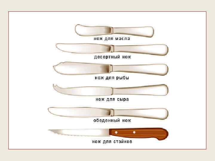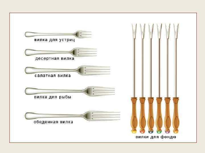 1. 2. 3. 4. Столовая Для рыбы Закусочная Для лобстеров(игла для омаров) 5. Для фруктов 6. Салатная 7. Десертная 8. Для мороженого 9. Для устриц, мидий 10. Для морепродуктов 11. Для клубники 12. Для лимона 13. Для устриц