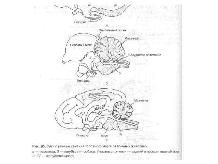 При выходе животных на сушу мозжечок вначале редуцируется (у амфибий): он состоит из узкой поперечной пластинки над ромбовидной ямкой.