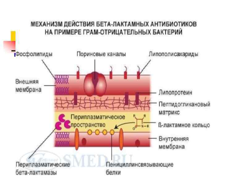 КЛАССИФИКАЦИЯ АНТИБИОТИКОВ ПО МЕХАНИЗМУ ДЕЙСТВИЯ Ингибиторы синтеза клеточной стенки. n Ингибиторы синтеза белка на рибосомах. n Ингибиторы синтеза нуклеиновых кислот n Нарушающие функцию мембран клетки n