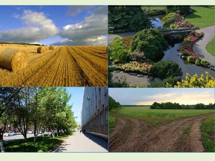 б) Среда «второй природы» (квазиприродная среда) – все модификации природной среды, искусственно преобразованные людьми, с отсутствием системного самоподдержания, т. е. постепенно разрушающиеся без постоянного регулирующего воздействия со стороны человека: • пахотные земли, культурные ландшафты и т. д. ; • грунтовые дороги; • внешнее пространство населенных мест с его природными физико-химическими характеристиками и внутренней структурой (разграничением заборами, различными постройками, изменяющими тепловой и ветровой режимы, зелеными полосами, прудами и т. п. ); • зеленые насаждения (бульвары, газоны, ландшафтные парки, лесопарки, сады, дающие имитацию природной среды).