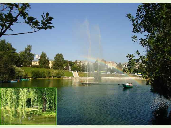 На территории парка им. Кирова находится цирк, диорама, аттракционы, аллея новобрачных, подкова счастья, пруд с фонтаном: ) В летнюю пору парк полон зелени, всюду клумбы и газоны, скамеечки с видом на пруд с плакучими ивами: ) Это место спокойствия, где можно побыть наедине с природой и собой, прогуляться с друзьями, с детьми на свежем воздухе. Немного о самом изящном дереве парка – иве. Все ивы светолюбивы, растут быстро, нетребовательны к почве, но нуждаются в достаточной влажности воздуха и почвы. Имеют много декоративных достоинств: яркие побеги, красивые и обильные листья, разнообразные формы кроны, поэтому многие из них весьма желательны в озеленении берегов водоемов, одиночно и группами. Хорошо создает имитацию природной среды, так необходимой городскому человеку.