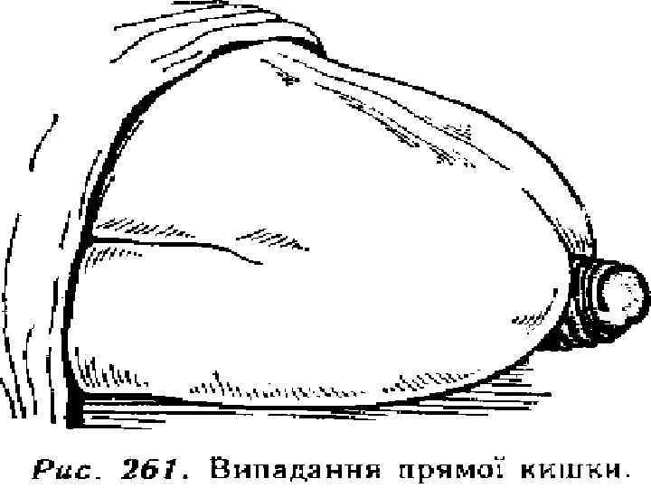 Випадіння прямої кишки Це вихід стінки прямої кишки з заднього проходу. Розрізняють випадіння слизової оболонки прямої кишки і випадіння всіх шарів стінки. В основі – розслаблення м'язової стінки і діафрагми таза. Клінічні ознаки Розрізняють 4 стадії випадіння прямої кишки: 1. Кишка випадає при дефекації і самостійно вправляється 2. Кишка випадає після дефекації і потребує додаткового вправлення 3. Випадає при невеликому фізичному навантаженні 4. Кишка випадає при вертикальному положенні хворого і невправляється. Додаткові симптоми: нетримання калу і газів. Лікування Оперативне – підшивання і фіксація прямої кишки.