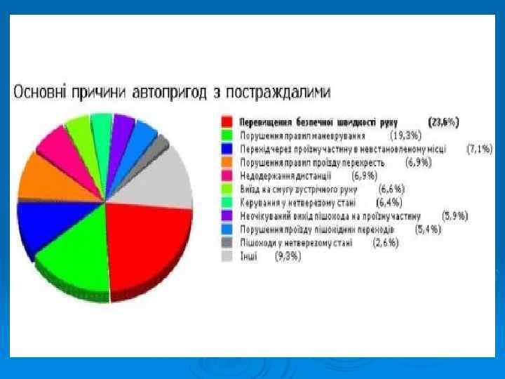Факторы риска § нарушение правил дорожного движения, в том числе: § § алкогольное опьянение; превышение допустимой скорости движения; неиспользование ремней безопасности; использование неисправного транспортного средства, § усталость водителя (водитель при сильной усталости может уснуть за рулём); § разговоры по мобильному телефону; § сложные погодные условия;