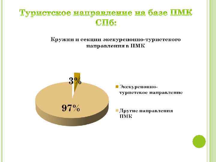 Наибольший процент в ПМК вида экскурсионно-туристской деятельности составляют: