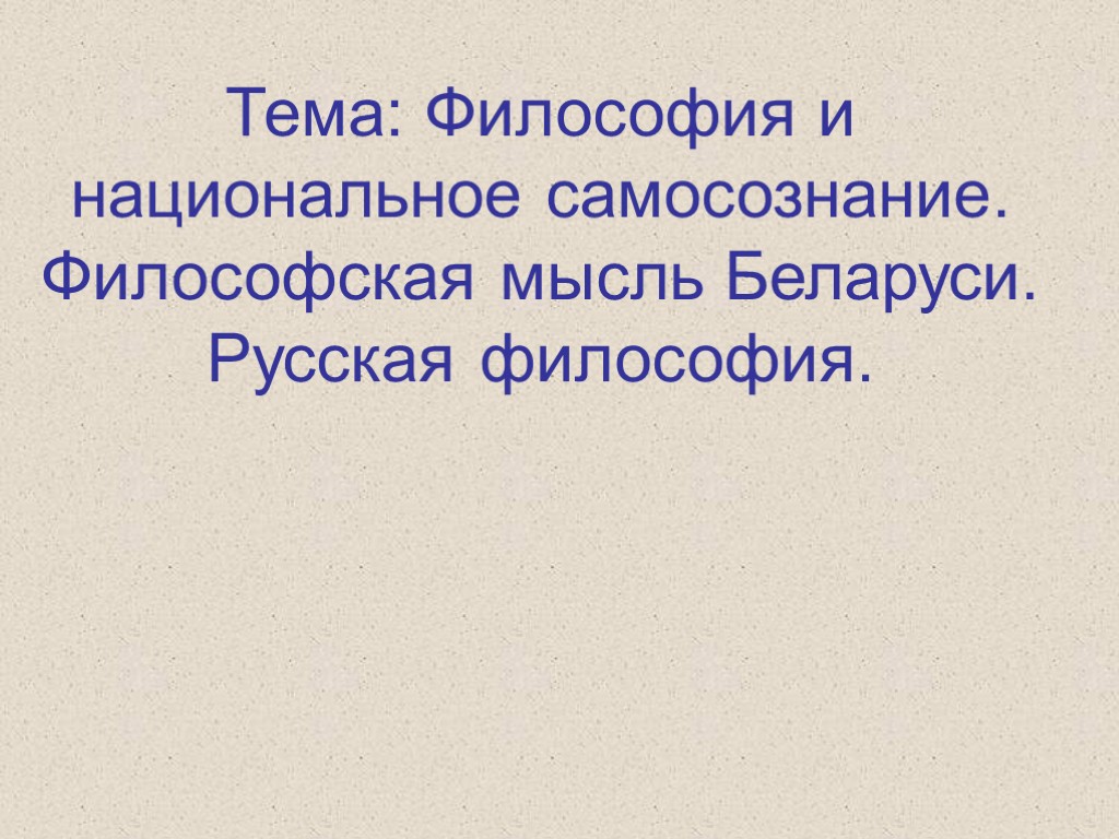 Тема: Философия и национальное самосознание. Философская мысль Беларуси. Русская философия.