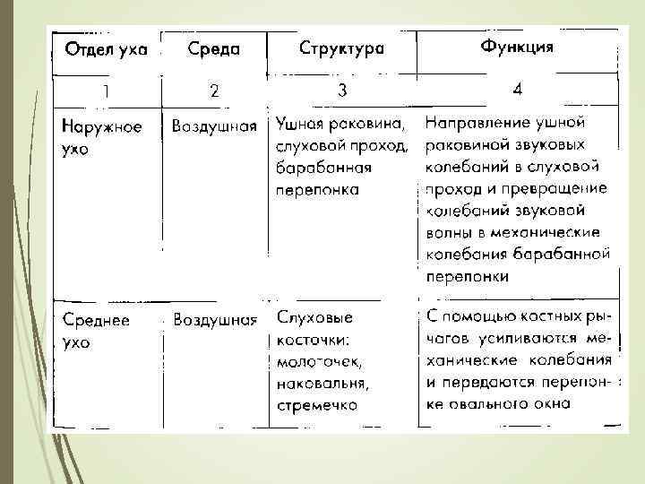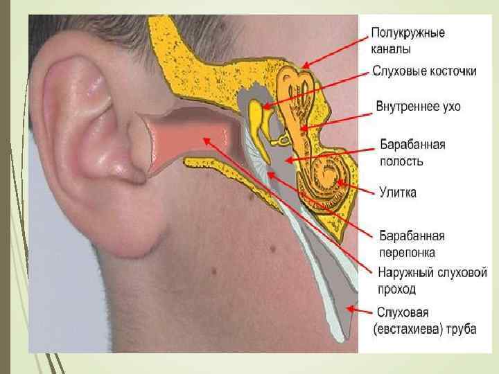 Орган слуха состоит из звукопроводящей системы (наружное, среднее и внутреннее ухо) и звуковоспринимающей системы (волосковые клетки на базиллярной мембране внутреннего уха)