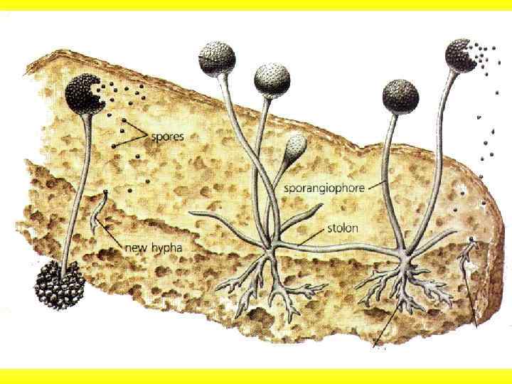 Плесневые грибы. Дрожжи Мукор. Класс Зигомицеты. Низшие грибы. Мицелий несептированный, ветвящийся, многоядерный (ядра содержат гаплоидный набор хромосом), имеющий вид белой плесени. Образует многочисленные вертикальные спорангиеносцы со спорангиями. В спорангиях эндогенно образуется до 10 тыс. многоядерных спор. Попадая в подходящие условия, споры прорастают и дают начало новому мицелию мукора. Так происходит бесполое размножение мукора. При истощении субстрата мукор переходит к половому размножению по типу зигоогамии (гаметангиогамии).