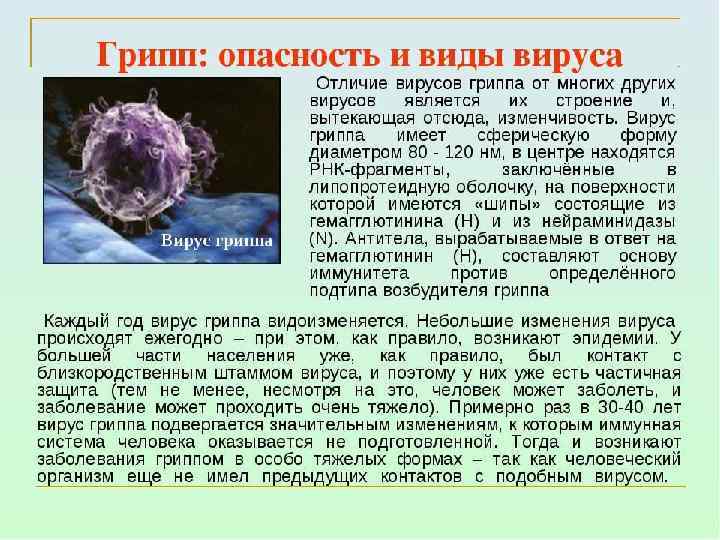 Грипп является острым инфекционным заболеванием дыхательных путей, которое вызывается вирусом. Вирус гриппа широко распространен в природе. Заболеванию подвержены животные и люди. Симптомы гриппа напоминают таковые при простуде. Осложнения гриппа серьезные и в ряде случаев заканчиваются летальным исходом. Заболевание особо опасно для маленьких детей, больных с тяжелыми хроническими заболеваниями и пожилых людей.
