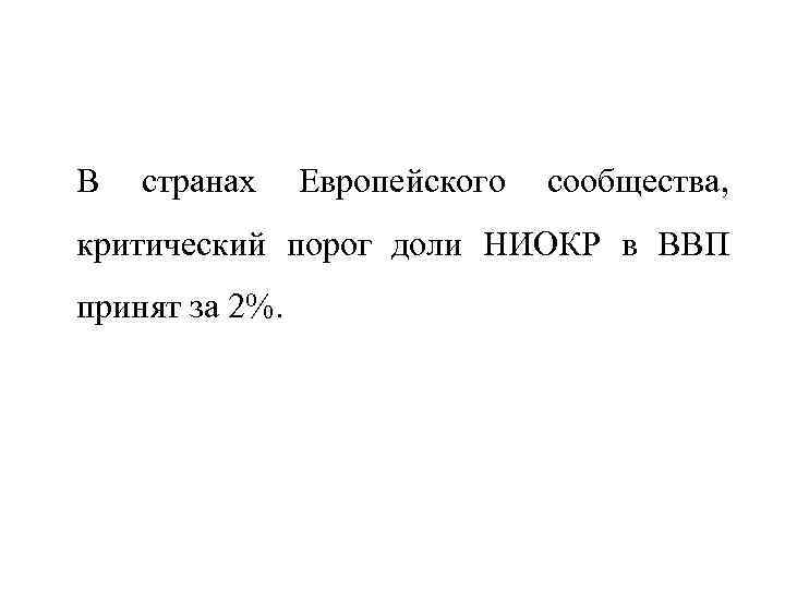 В странах Европейского сообщества, критический порог доли НИОКР в ВВП принят за 2%.