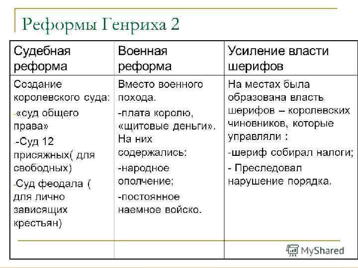 Генрих II (1154 -1189) • Судебная реформа • Военная реформа • Административная реформа