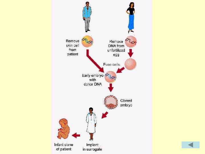 Схема клонирования клетка молочной железы яйцеклетка удаление ядра ядро введение ядра донора Терапевтическое клонирование Репродуктивное клонирование эмбрион клон суррогатная мать стволовые клетки