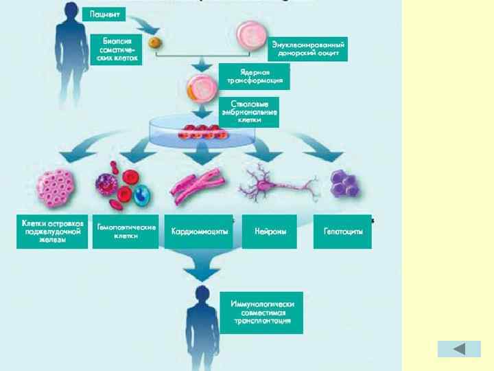 Терапевтическое клонирование предполагает остановку развития эмбриона на ранних стадиях для выделения стволовых клеток. Стволовые клетки способны к быстрому размножению и созреванию в клетки различных тканей организма.