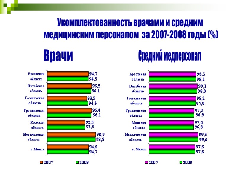 Программа развития здравоохранения Республики Беларусь на 2006 - 2010 годы (утв. в 2006 г.) - задачи: преодоление различий в обеспечении медицинской помощью городского и сельского населения; совершенствование системы социальных стандартов и территориальных программ государственных гарантий оказания медицинской помощи; создание эффективной системы экстренной медицинской помощи; развитие высокотехнологичных видов медицинской помощи; обеспечение диспансеризации всего населения; внедрение адекватных, современных технологий управления здоровьем женщин и детей; формирование у населения навыков здорового образа жизни; развитие профилактических и реабилитационных технологий; увеличение ожидаемой продолжительности жизни населения; совершенствование медицинского образования.