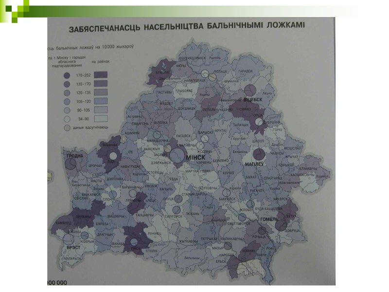 Государственные социальные стандарты по обслуживанию населения республики (пример) минимальный норматив обеспеченности врачами общей практики, участковыми врачами – 1 врач на 1,3 тыс. жителей; норматив обеспеченности койками – 9 коек на 1 тыс. жителей; норматив обеспеченности аптеками – 1 аптека на 8 тыс. жителей; норматив обеспеченности бригадами скорой медицинской помощи (суммарно) – 1 бригада на 12,5 тыс. жителей; норматив отопления жилых помещений - 18°С; норматив обеспеченности детей дошкольного возраста местами в учреждениях дошкольного образования – 85%; норматив обеспечения учащихся персональными компьютерами – 1 компьютер на 30 учащихся или не менее 1 компьютерного класса на учреждение; норматив обеспеченности центрами социального обслуживания населения – 1 центр на административный район.