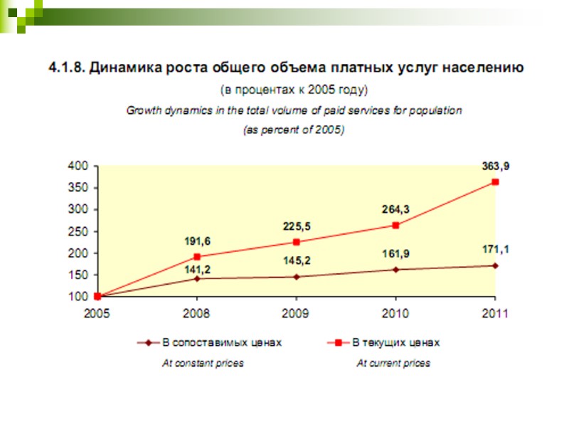 Расходы на финансирование культуры в 2008г. – 1,2% расходов консолидированного бюджета. Доля расходов консолидированного бюджета на физическую культуру, спорт, культуру и СМИ: 2005г. – 2,2%; 2011г. – 3,3%.