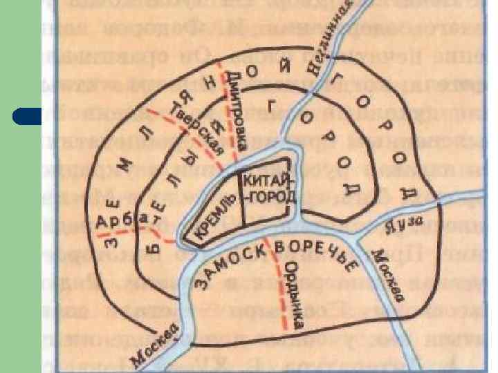 Москва l l l В 16 веке сложилась характерная для Москвы радиальная застройка Появился Китай – город, защищавший прилегающие к Красной площади слободы, появились белокаменные стены Белого города (бульварное кольцо), Земляной город (садовое кольцо). Окончательно оформился Кремлевский ансамбль