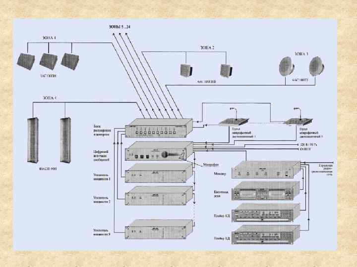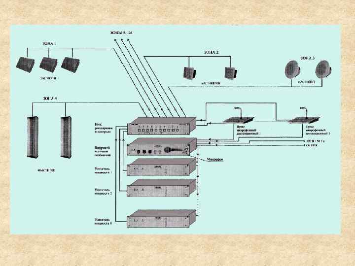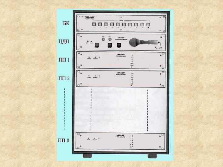 Система “ВЕЛЛЕЗ” (НВП Електроприлад м. Львів) Склад системи: - цифрове джерело повідомлень; - підсилювач потужності; - блоки комутації; - блоки резервного живлення; - пульти мікрофонні; - акустичні системи.