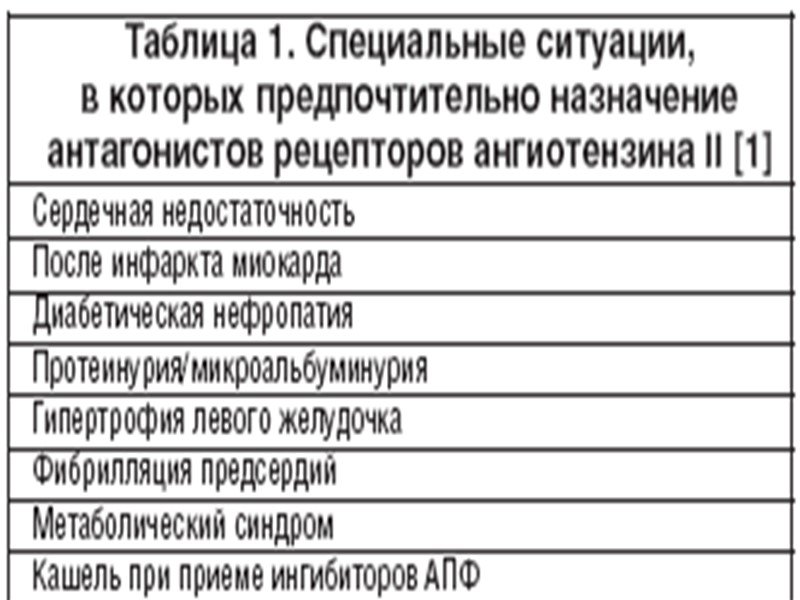Фармакодинамика блокаторов АТ1 рецепторов Мех-м действия: необратимые блокаторы АТ1 рецепторов ССС, почек, ЦНС и надпочечников. Эффекты: А) Дилятация сосудов, увеличивают выделение натрия, тормозят пролиферацию и фиброз Б) Снижают систолическое и диастолическое давление В) Стойкий антигипертензивный эффект через 3-4 недели курсового приема Г) Не снижают нормальное АД Д) Оказывают антиагрегантное д-е, снижают продукцию ФНО, ИЛ-6