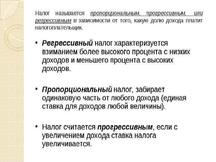 Прогрессивный, пропорциональный и регрессивный налог