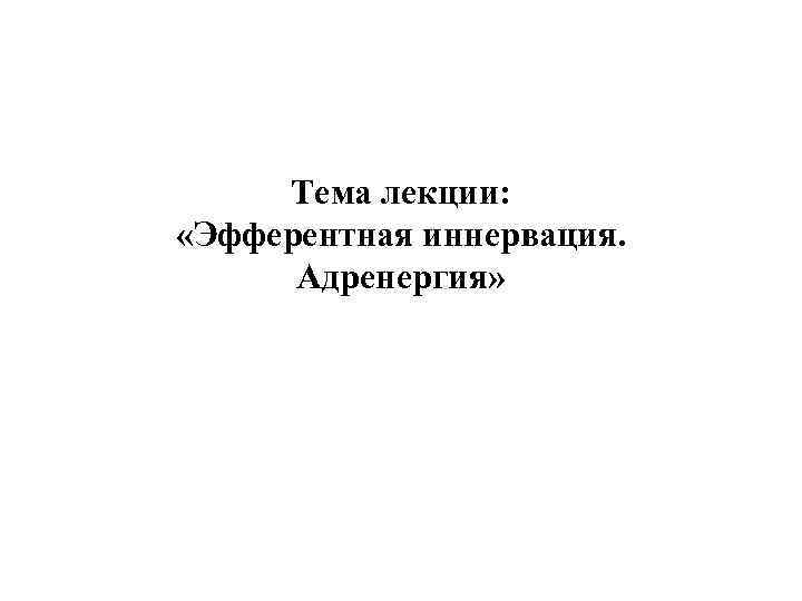 Тема лекции: «Эфферентная иннервация. Адренергия»