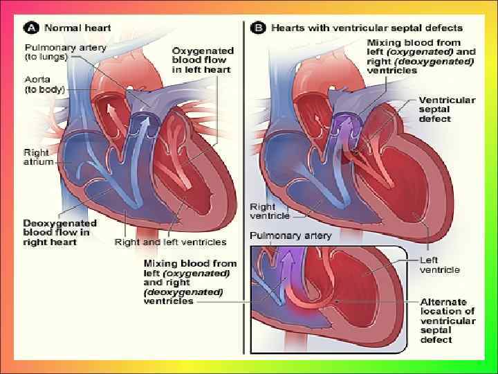 • После рождения на фоне физиологического высокого сопротивления сосудов малого круга кровообращения при небольших дефектах (0, 2 1 см) сброс крови слева направо невелик и существенно не влияет на гемодинамику. • В этих случаях сброс крови небольшой, и компенсация маловыраженных гемодинамических изменений реализуется незначительной гипертрофией левого желудочка.