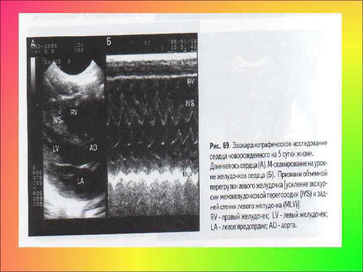 Эхо. КГ: • непосредственная визуализация протока, • увеличение размера левого желудочка, признаки объемной перегрузки левого желудочка (увеличение амплитуды движения межжелудочковой перегородки и миокарда задней стенки левого желудочка), • увеличение левого предсердия; • увеличение отношения размеров левого предсердия к диаметру аорты на уровне клапанного кольца > 1, 1; • уменьшение отношения периода напряжения к периоду изгнания левого желудочка < 0, 25; • снижение диастолических скоростей кровотока в магистральных церебральных артериях с увеличением индекса их сосудистой резистентности).