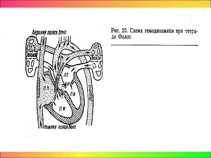 • • • В терминальной стадии порока у детей старшего возраста развиваются: постоянная одышка, цианоз, более выраженный на нижних конечностях, тахикардия в покое, нарушения сердечного ритма, кардиомегалия, признаки систолической перегрузки и декомпенсация правых отделов сердца: гепатомегалия, отеки на нижних конечностях, пульсация яремных вен.