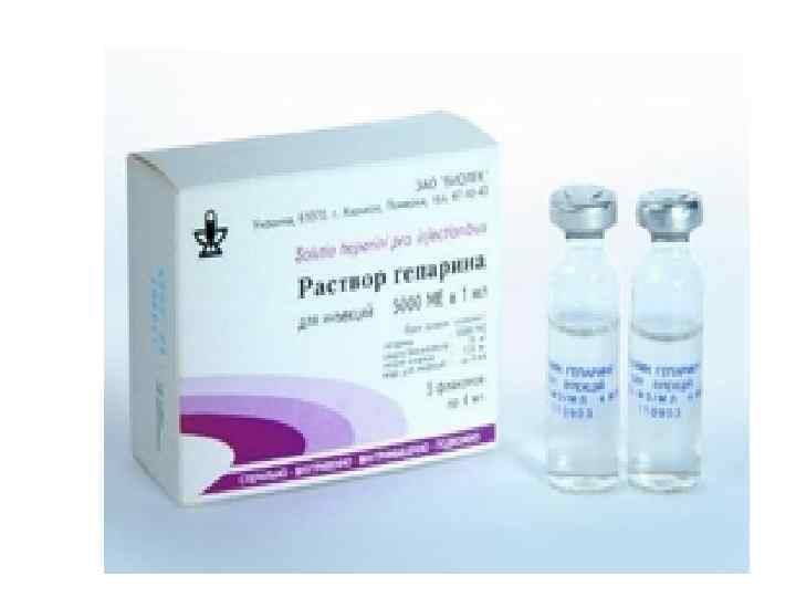 Показания к ведению гепарина • Инфаркт миокарда острый период (первые 5 суток) • Острые и хронические тромбозы артерий и вен (например, тромбофлебит) • ТЭЛА • Для профилактики тромбозов перед операцией и после операции при повышенной свертываемости крови • Для промывания катетеров и венфлонов