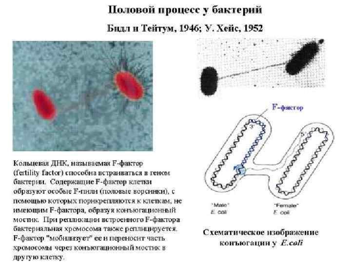 Электронномикроскопическое изображение конъюгации у кишечной палочки; удлинённая клетка — донор, круглая — реципиент.