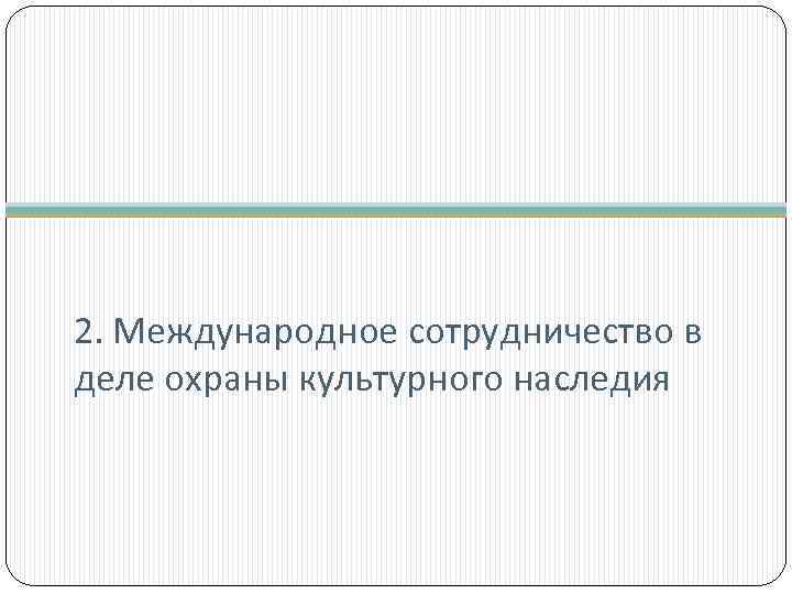 2. Международное сотрудничество в деле охраны культурного наследия