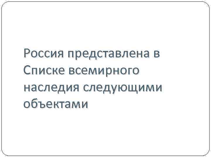 Россия представлена в Списке всемирного наследия следующими объектами