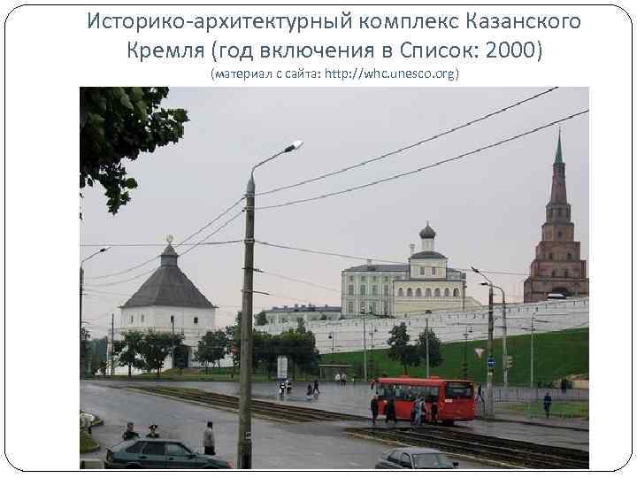 Историко-архитектурный комплекс Казанского Кремля (год включения в Список: 2000) (материал с сайта: http: //whc. unesco. org)