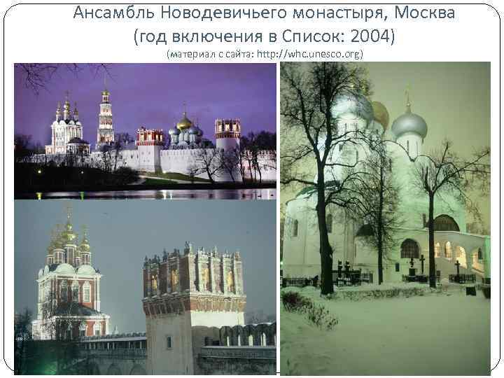Ансамбль Новодевичьего монастыря, Москва (год включения в Список: 2004) (материал с сайта: http: //whc. unesco. org)