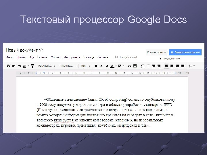 Текстовый процессор Google Docs