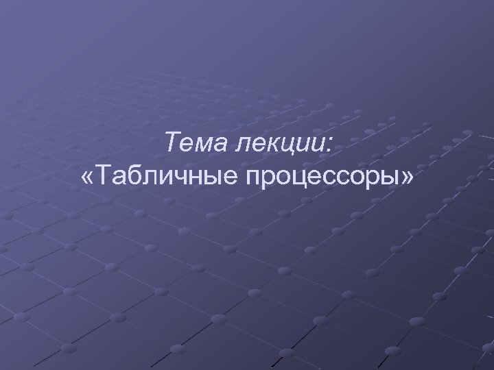 Тема лекции: «Табличные процессоры»