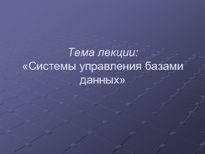 Тема лекции: «Системы управления базами данных»