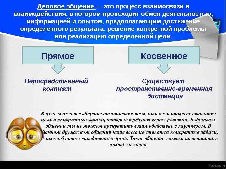 ДЕЛОВОЕ ОБЩЕНИЕ — общение с целью решения соответствующих практических проблем, ситуаций, когда необходимо направить или изменить деятельность других людей для выполнения конкретного дела.