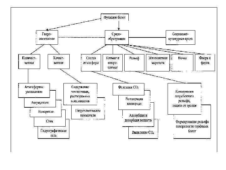 Охрана болот в соответствии с международным проектом «Телма» (Боч, Мазинг, 1973) • • - Болота представляют собой эталоны специфических экосистем в различных природных зонах; – на болотах произрастают редкие виды растений, занесенные в Красные книги различного ранга, – на болотах формируются специфические для них растительные сообщества, в том числе редкие, – болота являются местами обитания и воспроизводства ряда видов животных; – многие болота – источники ценных ресурсов лекарственных и ягодных растений; – болота являются эффективными продуцентами кислорода и фиксаторами углекислого газа из атмосферы; – болота – прекрасные естественные фильтры и могут служить поглотителями многих загрязняющих веществ; – болотные экосистемы оказывают влияние на водный баланс местности, выполняют водоохранную функцию, а также имеют научную, рекреационную и эстетическую ценность.