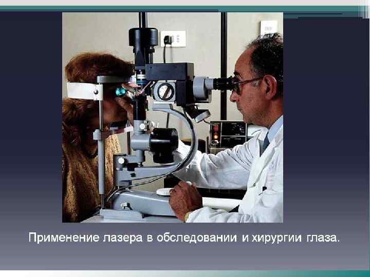 ПРИМЕНЕНИЕ ЛАЗЕРОВ В МЕДИЦИНЕ В зависимости от характера взаимодействия лазерного излучения с биологическими тканями различают три вида фотобиологических эффектов: 1. Фотодеструктивное воздействие, при котором тепловой, гидродинамический, фотохимический эффекты света вызывают деструкцию тканей. Этот вид лазерного взаимодействия используется в лазерной хирургии. 2. Фотофизическое и фотохимическое воздействие, при котором поглощенная тканями энергия возбуждает в них атомы и молекулы, вызывает фотохимические и фотофизические реакции. На этом виде взаимодействия основывается применение лазерного излучения как терапевтического. 3. Невозмущающее воздействие, когда биосубстанция не меняет своих свойств в процессе взаимодействия с излучением. Это такие эффекты, как рассеивание, отражение и проникновение. Этот вид используют для диагностики.