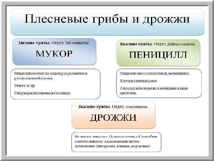 Аспергиллы, или леечная плесень , встречаются на хлебе, фруктах и имеют характерный вид конидиеносца — плодоносящего гифа. От утолщенного конца этого гифа отходят выросты, напоминающие льющиеся из лейки струйки воды. Пенициллы, или гриб-кистевик, имеют конидиеносец, который разветвляется на конце, напоминая кисть руки. Некоторые виды плесени используются в промышленности для получения лимонной кислоты, приготовления определенных сортов сыра. Пенициллы являются продуцентами мощного антибиотика — пенициллина. Плесени могут вызывать заболевания человека.