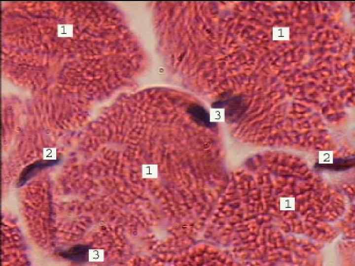 1) Мышечное брюшко (venter) состоит из паренхимы и стромы. Паренхима представлена исчерченной мышечной тканью, структурной единицей которой является миосимпласт. Миосимпласты объединяются при помощи рыхлой соединительной ткани, которая называется эндомизий, в пучки 1 порядка. Пучки 1 порядка объединяются в пучки 1, 2, 3 порядка и между ними формируются соединительнотканные перегородки (перимизий), по которым внутрь в мышцу проникают сосуды и нервы. Снаружи мышечное брюшко покрыто соединительнотканной оболочкой (эпимизием). Эндо-, пери- и эпимизий образуют строму мышечного брюшка и защищают мышцу от чрезмерного утолщения или растяжения. Соединительнотканные элементы, имеющиеся между мышечными волокнами, по концам мышечного брюшка, переходят в сухожилия.