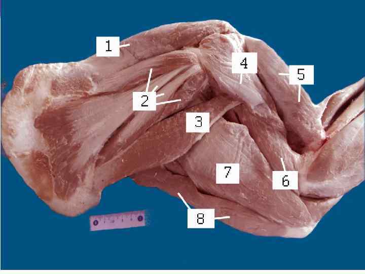 1. Обычно мышцы всегда лежат выше того сустава, на который они действуют. 2. Мышцы-флексоры, сгибающие сустав, всегда располагаются внутри сустава, а мышцы-экстензоры всегда проходят через вершину угла сустава. 3. Отводящие мышцы-абдукторы всегда лежат на латеральной поверхности, а приводящие мышцы-аддукторы – на медиальной. 4. Мышцы-супинаторы, вращающие сустав наружу, лежат ближе к латеральной поверхности, а мышцы-пронаторы, вращающие сустав во внутрь, - ближе к медиальной поверхности. 5. На костях зейгоподия располагаются мышцы, которые действуют не только на запястный (заплюсневый) сустав, но и на суставы пальцев. 6. Мышцы на тазовой конечности развиты сильнее, чем на грудной, так как при передвижении животного основная работа выполняется тазовыми конечностями.